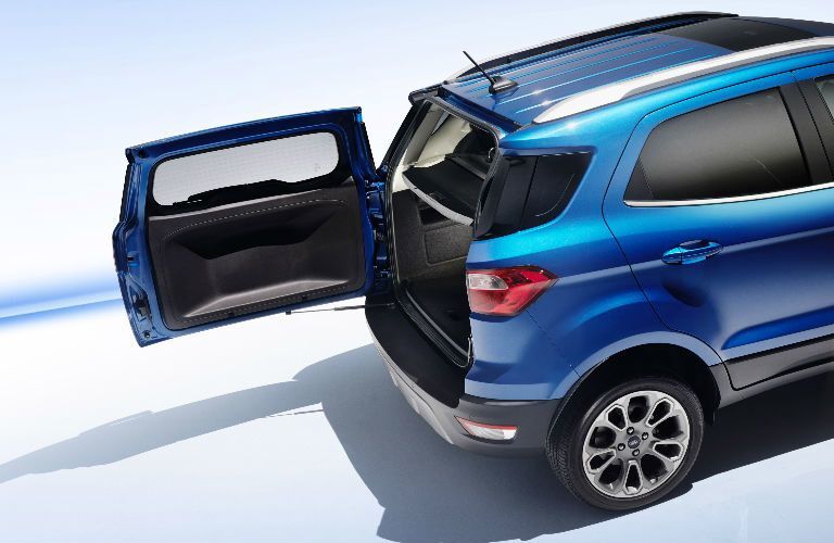 On sale in early 2018, the EcoSport will be the only subcompact SUV in the Ford lineup, fitting nicely alongside the Escape. Available in four trim levels: S, SE, SES, and Titanium, the EcoSport will provide plenty of choice and versatility at every level for consumers. Resembling the Escape, Edge, and Fiesta, the EcoSport will be right at home in the Ford lineup. Unlike other crossovers or hatchbacks, the EcoSport will feature a rear tailgate that swings open from the side.