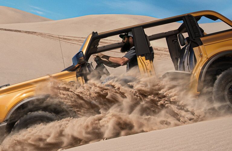 The 2021 Ford Bronco Big Bend trim level starts out at $33,385, making it the second most affordable model. The 2-door model has seating for up to four people and supplies you with up to 270 horsepower. There is plenty to love about the 2021 Ford Bronco Big Bend, including features like its remote start, AC outlet, and stylish steering wheel, all of which will be explored in detail below.