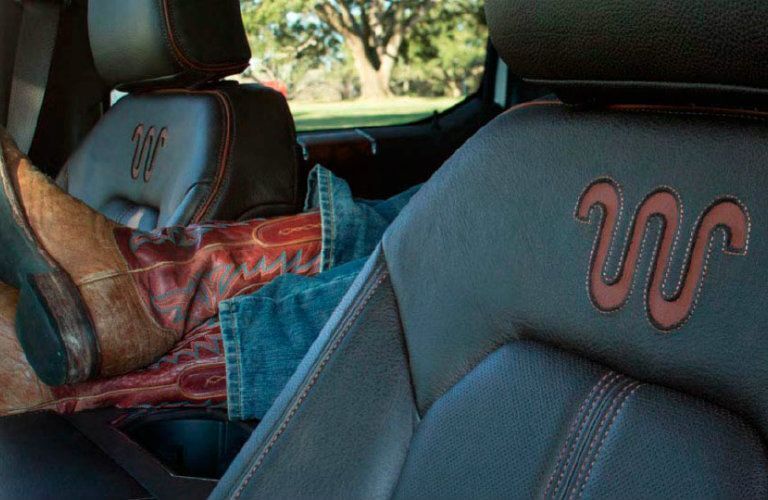 In addition to its tough exterior and impressive performance capabilities, part of what makes the 2016 Ford F-150 King Ranch such a successful model is its well-equipped interior. Interior design elements include ambient lighting, colour-coordinated carpet with carpeted King Ranch floor mats, flow-through centre console with floor shift, Mesa leather-wrapped and heated steering wheel, unique genuine wood interior trim accents, heated and cooled front seats, and heated rear seats.
